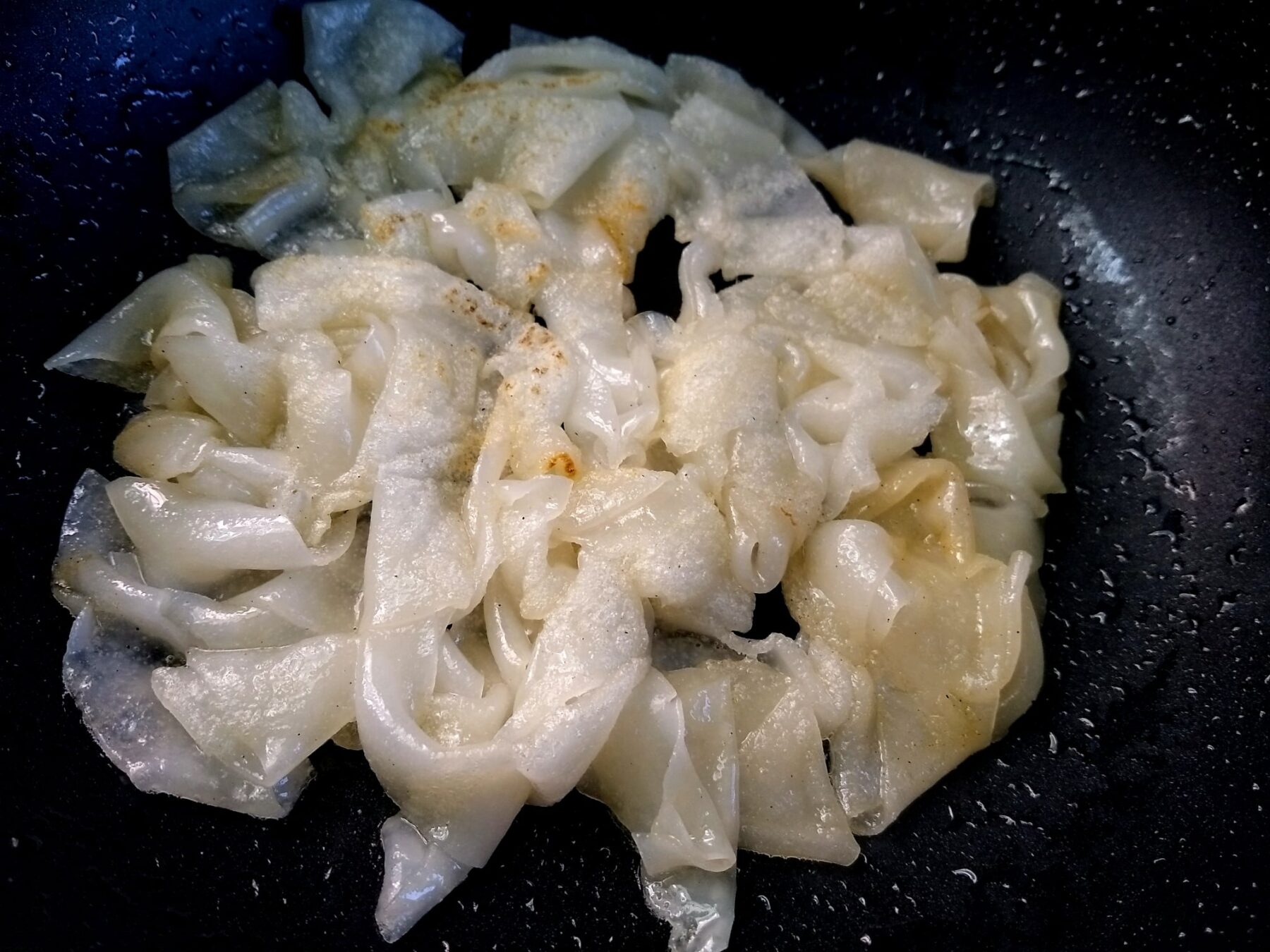 -เอาเส้นใหญ่มาผัดไ ฟ แร ง กับน้ำมันเล็กน้อยจนเส้นมีความเ ก รี ยม
