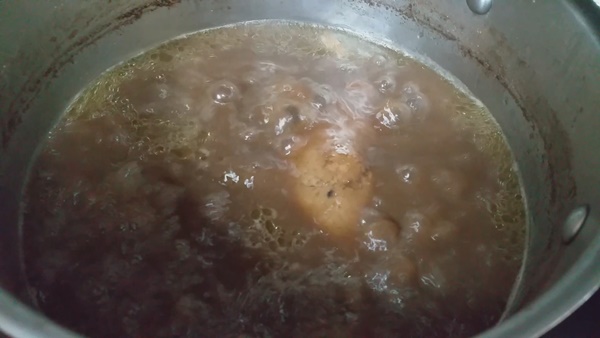 -นำน้ำครึ่งหม้อ ใส่ผงพะโล้ 1 ชต. ถ้าใครไม่ชอบกลิ่นพะโล้มาก ให้ลดผงพะโล้ เหลือ 1 ชช.คะ