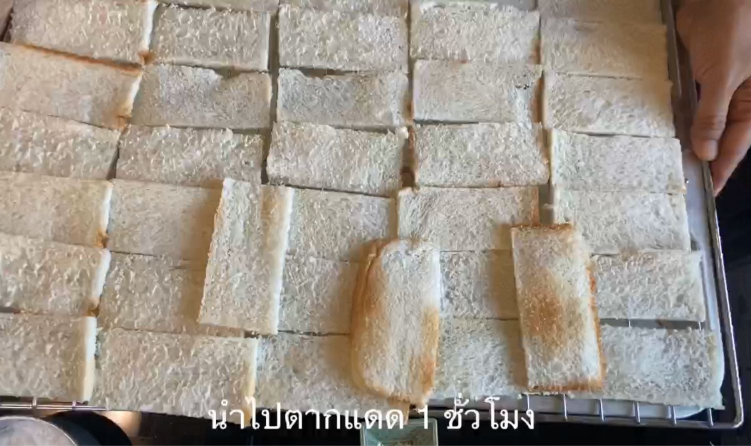 -นำไปตากแดด 1 ชั่วโมงเพื่อความกรอบของขนมปั ง