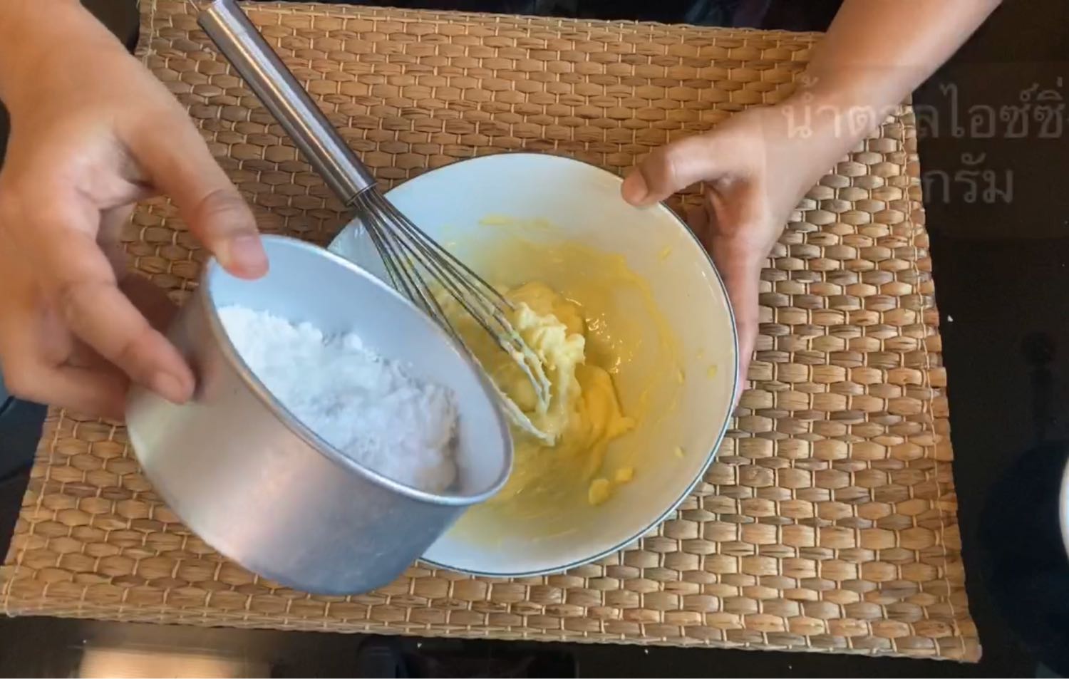 -มาผสมหน้าขนมปั งกันคะ เนยสด + น้ำตาลไอซ์ซิ่ง + เกลือ คนให้เข้ากันคะ