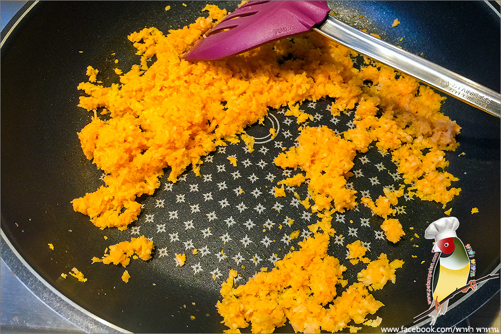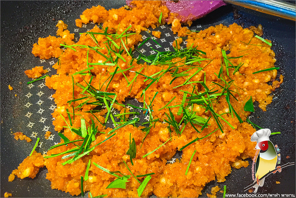 -ผัดให้ส่วนผสมเข้ากันดีและแห้ง
