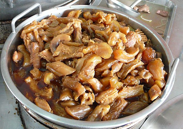 ตักเอ็นและเ นื้ อ ออกมาหั่ นเป็นชิ้นเล็ก(เ นื้ อหั่ นหนาประมาณ 1 ซม. เอ็นหน าประมาณ 2 ซม.) แล้วนำลงไปตุ๋น ปรุงรสด้วย