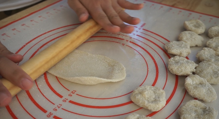 -ตัดแป้งให้เป็นแผ่นกลม