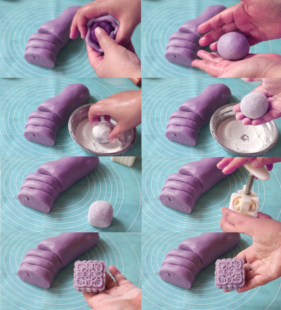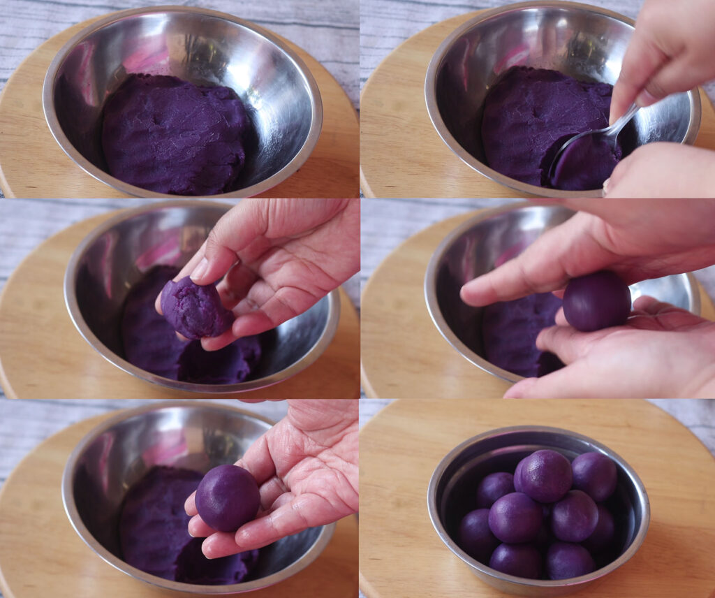 8.นำไ ส้มันม่วงมาปั้น ขนาด น.น.ประมาณ 35-40 กรัม