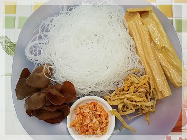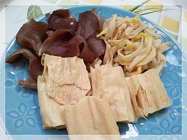 7. ฟองเต้าหู้ ด อ กไม้จีน เห็ดหูหนูแห้ง แช่น้ำให้นิ่ม พักเตรียมไว้ ( จะมีขายเป็นชุดรวมกัน )
