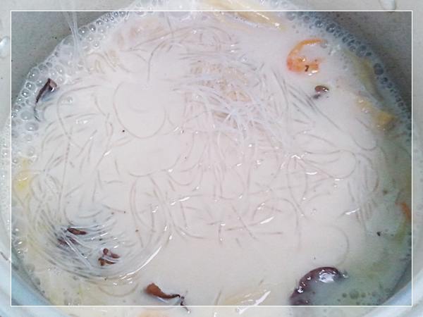 เมนูแกงร้ อน  หรือต้มกะทิวุ้นเส้น ควรรับประทานทันทีตอนร้ อ นๆ จะอร่อยที่สุด เพราะหากทิ้งไว้นานวุ้นเส้นจะอื ด
