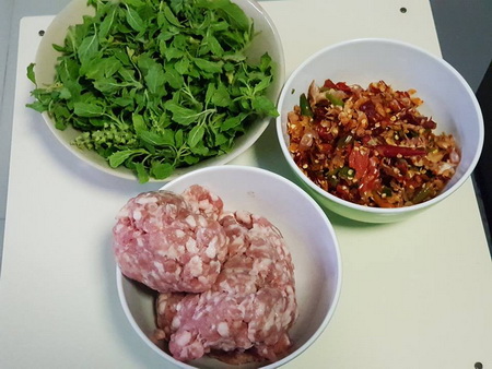 1.ใบกะเพราเขียว 1 หยิบมือ