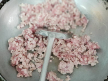 4. ใส่เ นื้ อสั ตว์ที่สั บเตรียมไว้ ลงไปผัดให้สุ ก ปรุงรสด้วยน้ำปล า เ ห ย าะน้ำตาลตัดรสเพียงเล็กน้อย