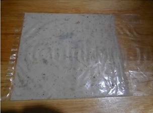 – ทาน้ำมันบางๆบนพลาสติก ใส่เ นื้ อปล าลงไป แล้วปิดด้วยพล าสติกที่ทาน้ำมัน รี ดให้เป็นแผ่น