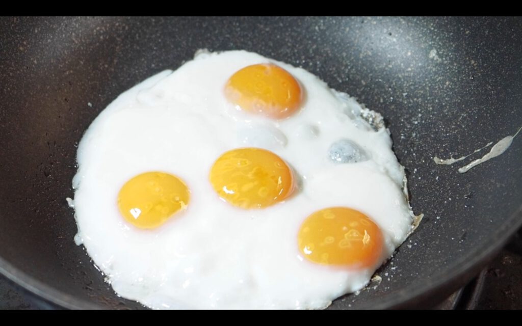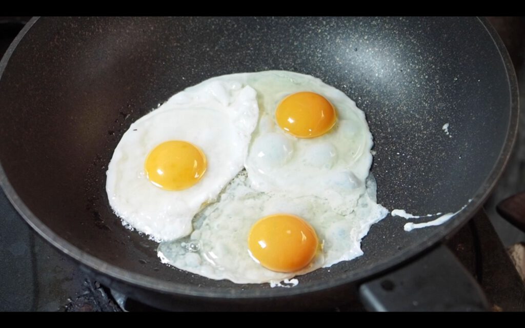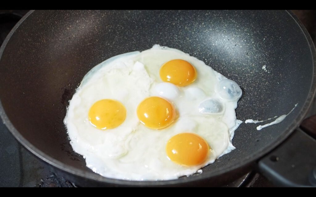 -จากนั้นต อ กไข่ลงไปในกระทะ จำนวนไข่ขึ้นอยู่กับหน้ากว้างของกระทะค่ะ ถ้าใส่หลายฟองก็จะออกมาเป็นแผ่นสวยๆ ถ้าได้ไข่ไก่สดๆ จะดีมากเลย