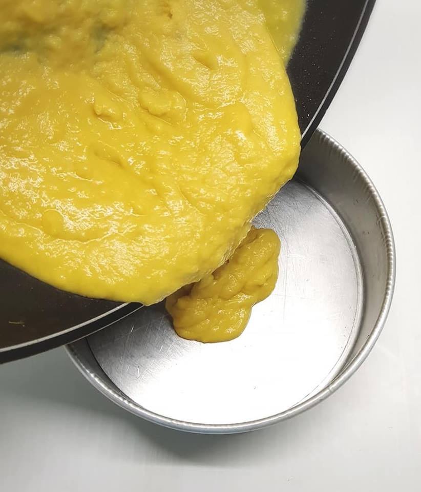 -เทใส่ถาด หรือพิมพ์สำหรับอบค่ะ
