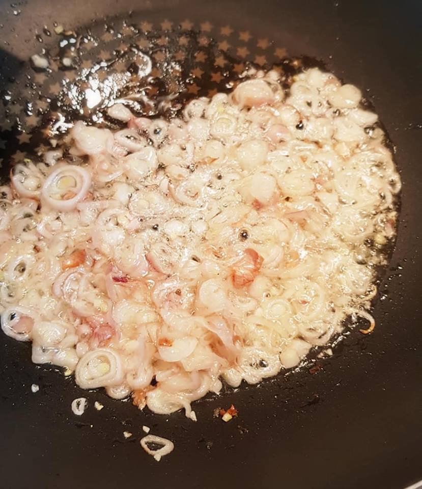 -ซอยหอมแดง แล้วเจียวในน้ำมัน จนหอมสุ ก ตักแยกหอมเจียว น้ำมันพักไว้ไม่แนะนำให้ใช้หอมเจียวสำเร็จรูปนะคะ
