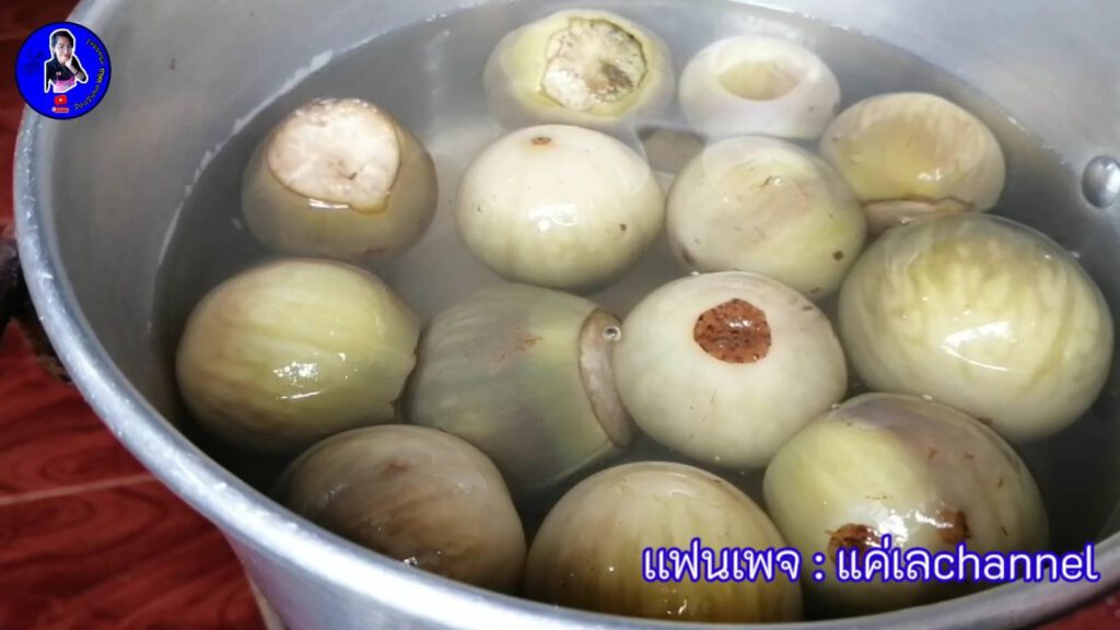 -นำมะเขือเปราะไปต้ม​ ต้มให้เ ปื่ อยเลยนะคะ