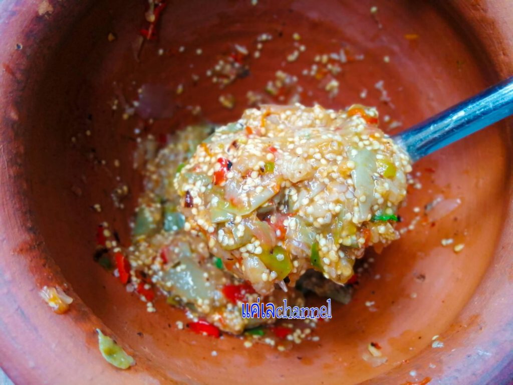 -ตำส่วนผสมให้เข้ากันอีกรอบ​ และลองชิมรสช าติดู​ ขาดเหลือยังไงสามารถเพิ่มเติมได้นะคะ