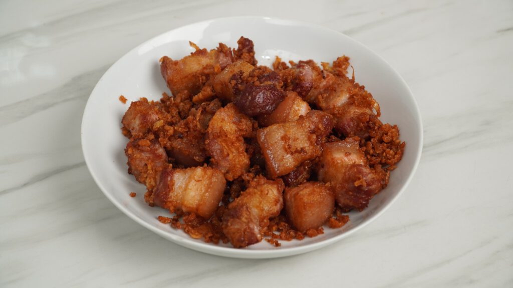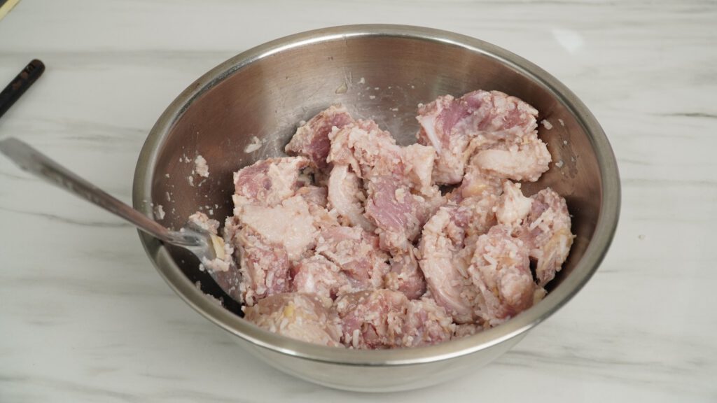 1.เริ่มจากการเตรียมหมูสามชั้น นำมาล้างให้สะอาด จากนั้นก็พักหมูไว้ให้สะเด็ดน้ำ จนแห้งก่อน