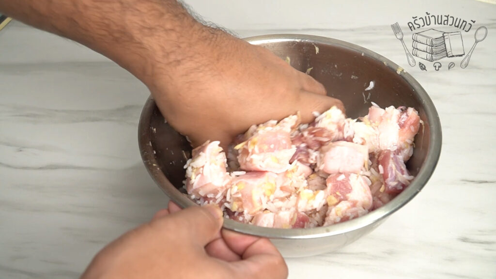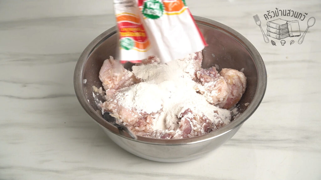 กระเทียมที่ติดอยู่ไม่ต้องเอาออก เพราะเวลาทอดออกมาแล้วกินได้ อร่อยมาก ๆ เลยด้วย