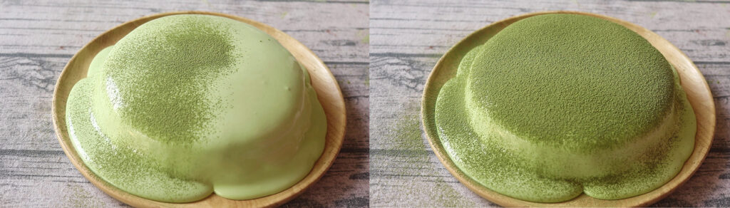 11.โรยด้วยผงช าเขียว ร่อนให้ทั่วเค้ก