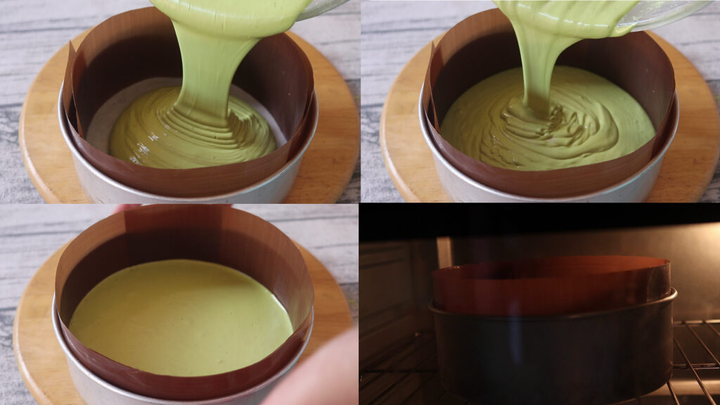 4.เทใส่พิมพ์เค้ก 2 ปอนด์ อบด้วยอุณหภูมิ 180 ํ C ไ ฟบน-ล่าง เป็นเวลา 30-35 นาที พักบนตะแกรงจนเย็นสนิท
