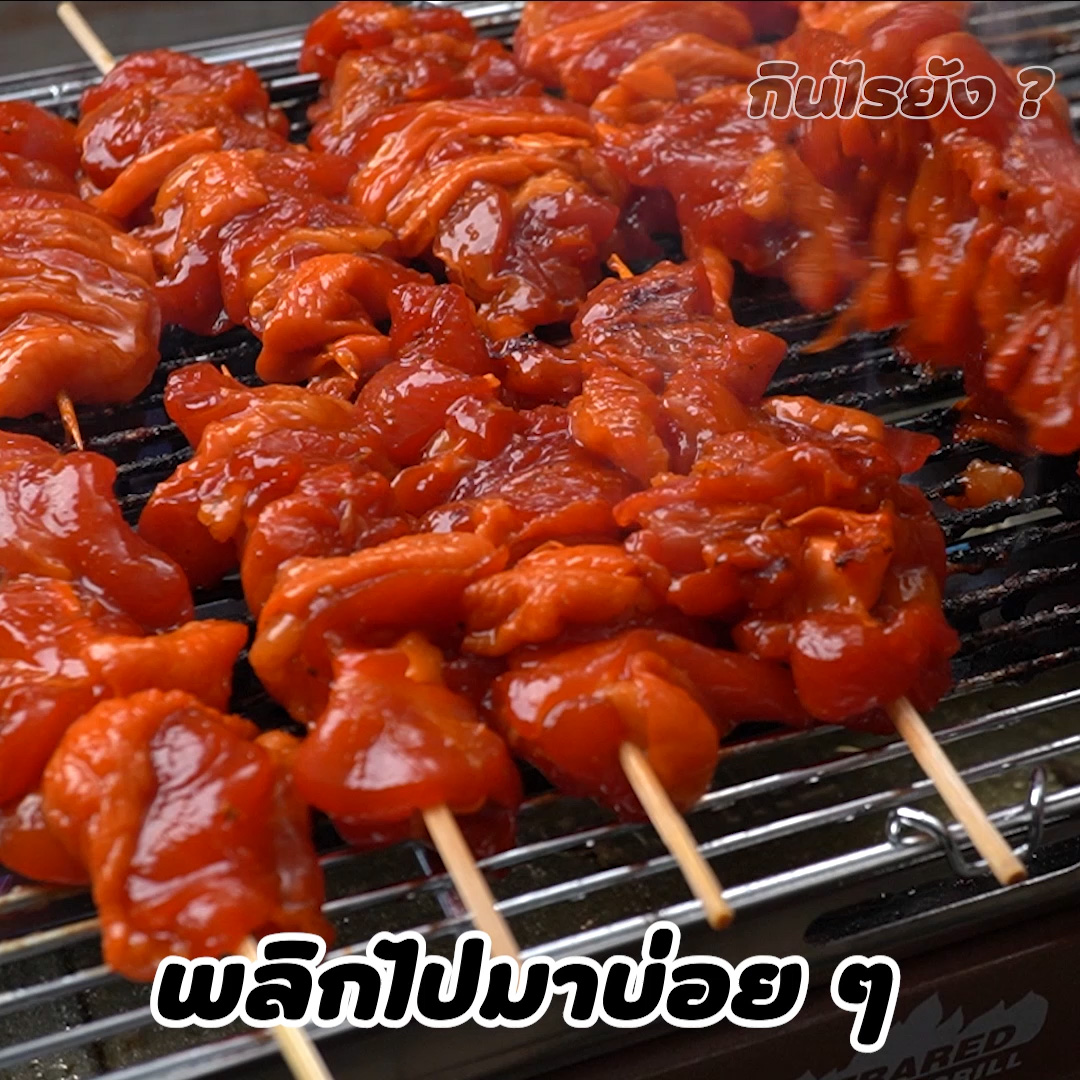 และระวังอย่ าให้ไ ฟ ลุ กจะทำให้ไก่ของเรามีสีดำๆ ไม่น่ากิน หากเ สี ย บไม้แล้วยังไม่ย่ างเก็บใส่กล่องปิดฝาแช่เย็นไว้ได้ 2-3 วัน