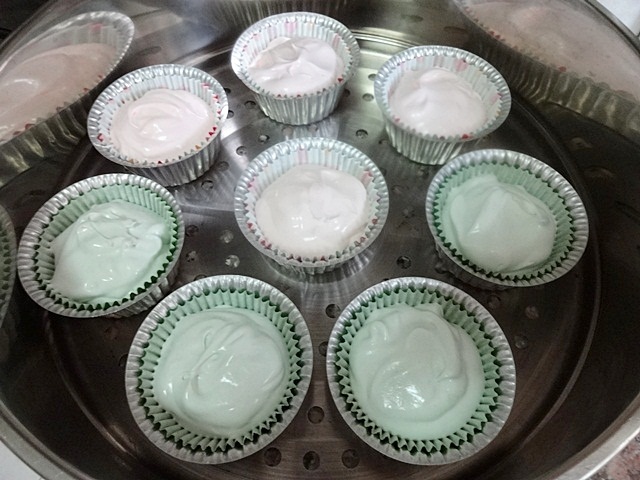 6. ตั้งน้ำให้เ ดื อ ด แล้วปรับเป็นไ ฟอ่อน นำขนมไปนึ่งประมาณ 15 นาที ระหว่างนึ่งและตอนเปิดฝา ระวังน้ำหยดใส่ขนม