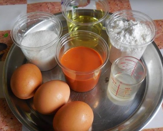 – ล่อนแป้ง+เกลือ+ผงฟู ใส่ลงไปในไข่ คนส่วนผสมให้เข้ากัน แล้วใส่น้ำมัน คนให้เข้ากัน