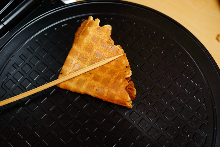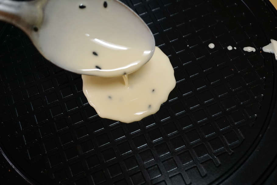 6.เปิดเครื่องให้ร้ อ น ตักแป้งหยอดแค่ 1 ช้อนกินข้าว รอ1นาที