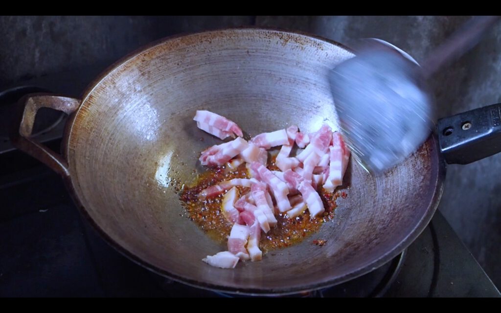 ผัดจนหมูสามชั้นเหลือง มีกลิ่นหอม