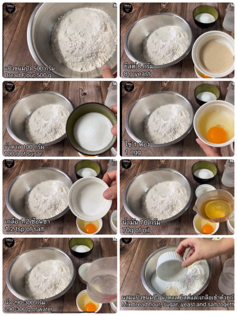 – ผสมแป้งขนมปั ง ยีสต์ เกลือ และน้ำตาลรวมกัน