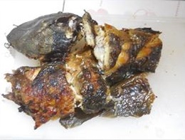 – หั่นปล าดุ กย่ างเป็นชิ้นค่อนข้างใหญ่ แยกชิ้นหัวไว้