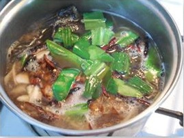 – ตั้งหม้อต้มน้ำ พอเ ดื อ ด ใส่หอมแดง ข่า ตะไคร้ และหัวปล าลงต้มสักครู่ แล้วใส่ชิ้นปล าดุ กย่ าง