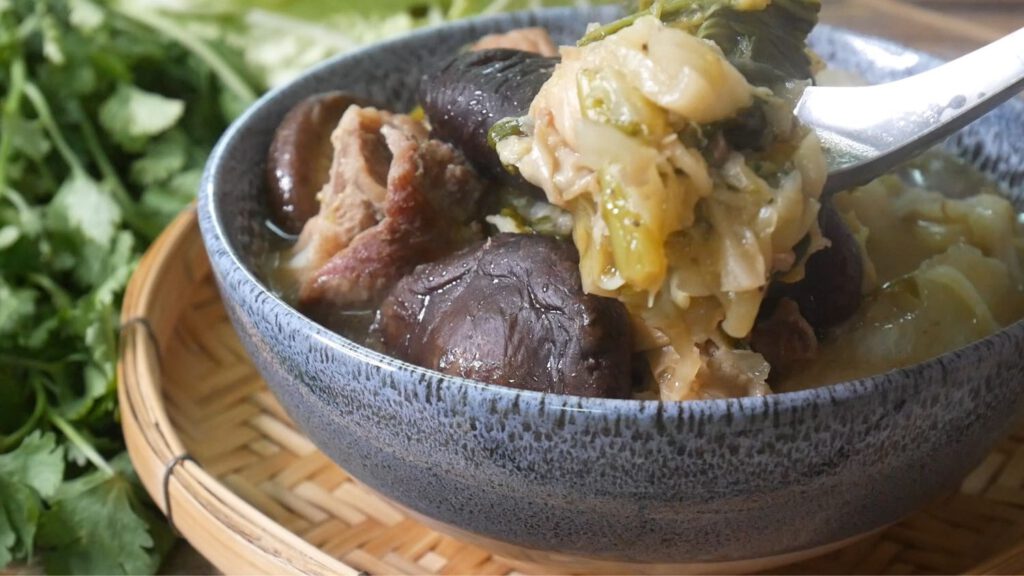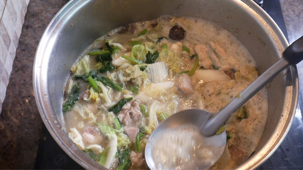 7 ใส่ฟองเต้าหู้ลงไปและปิดฝาตุ๋น 30 นาทีหรือจนกว่าผักจะเ ปื่ อย
