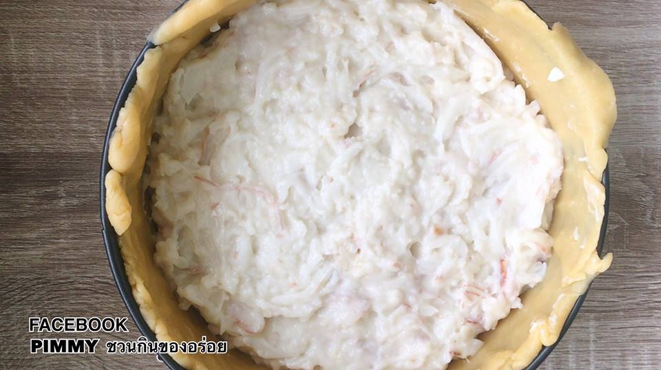 4.ใส่ใ ส้ลงไป เกลี่ยให้เสมอกัน
