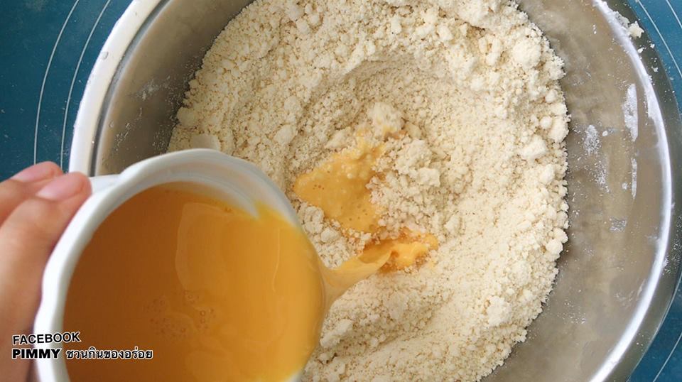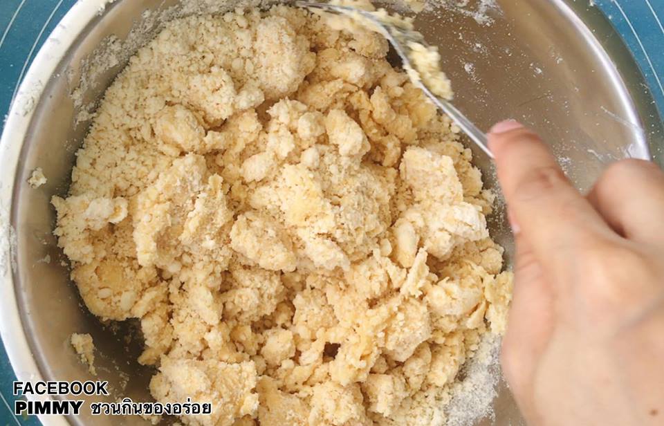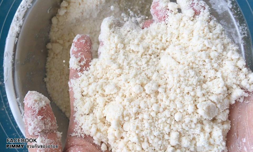 3.ใช้มือผสมๆคลุกเคล้าจนแป้งมีลักษณะเป็นเม็ดทรายเล็กๆ หรือใช้ที่สั บแป้งพายก็ได้ค่ะ