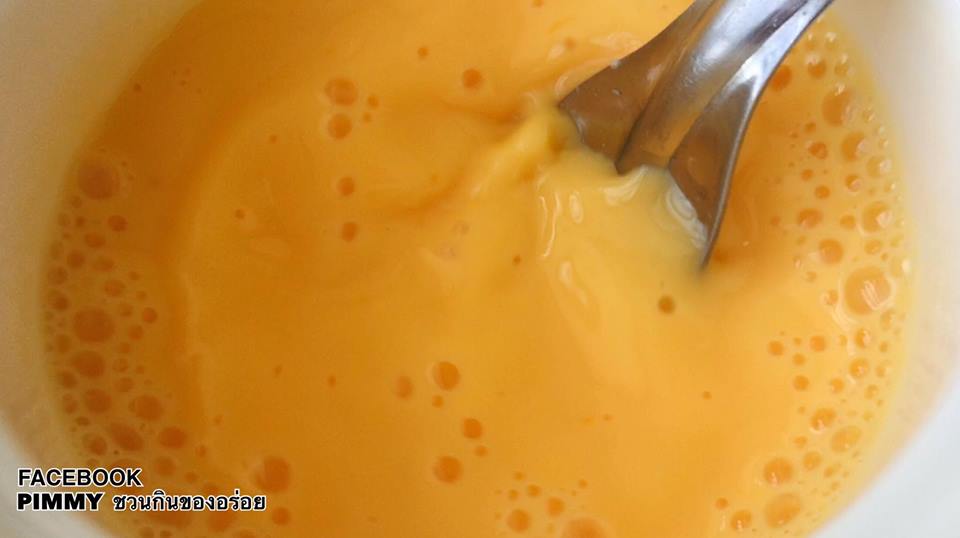 4.ผสมไข่แดง +น้ำส้มสายชูกลั่น +น้ำเย็นจัด ให้เข้ากัน