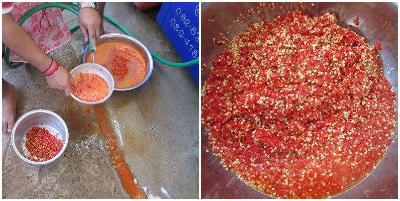 โขลกพริก คงโขลกจนกล้ามแขนขึ้นแน่นอน ฉะนั้นเพื่อความรวดเร็วและให้แตกละเอียดใช้วิธีการปั่นเขาจะดีที่สุด