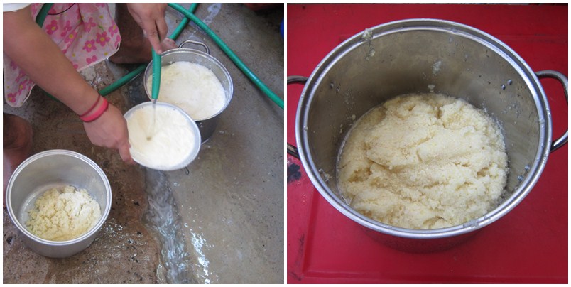 (กระบวยตามรูปนะครับ) หรือกะให้พอประมาณ ตามความคิดของตนเอง ใส่ง าขาวลงไปพอประมาณ