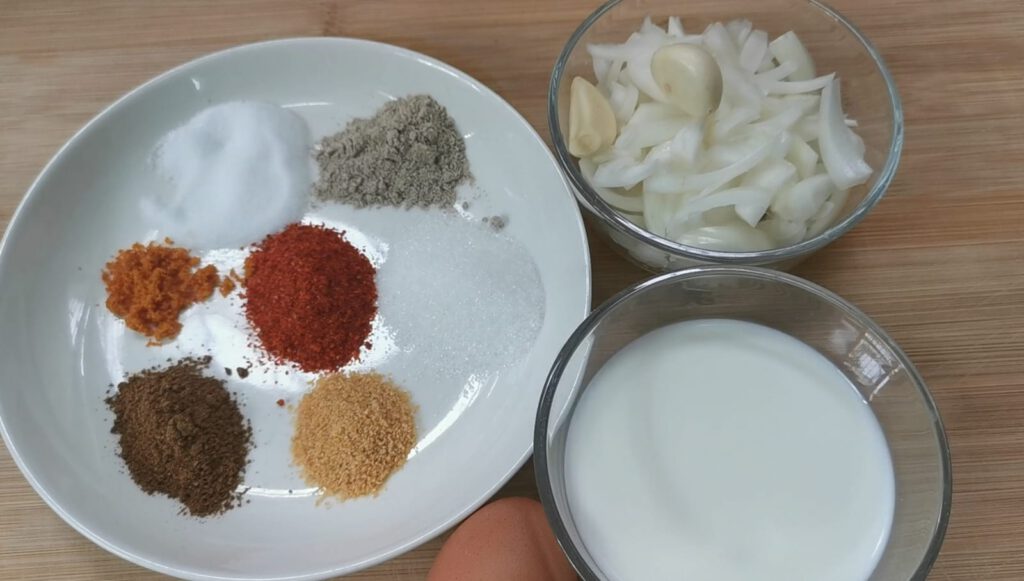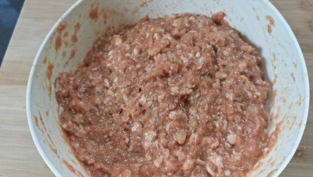 1.ปั่นเครื่องปรุงทั้งหมดให้ละเอียด ผสมลงในเ นื้ อสั ตว์ คลุกเคล้าให้เข้ากัน ปิดด้วยพลาสติกแรป ผักในตู้เย็น 1 ชั่วโมง