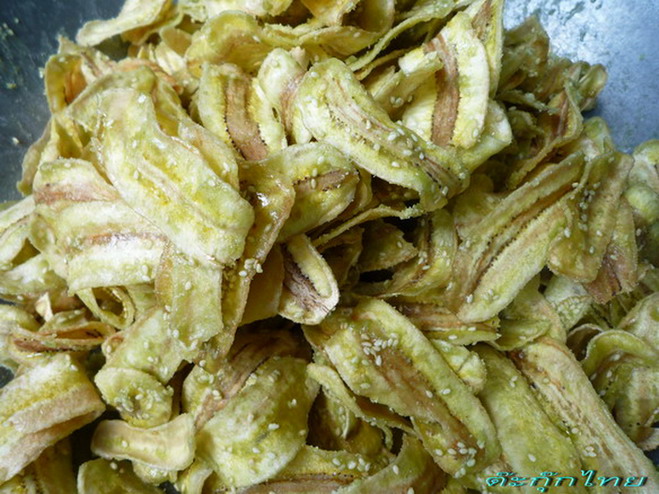 ควรที่จะดิ บจริงๆ กดลงไปยังแข็งอยู่ ถ้ากล้วยที่เริ่มจะสุ กแล้ว เวลาเอามาทอด กล้วยจะไม่กรอบ