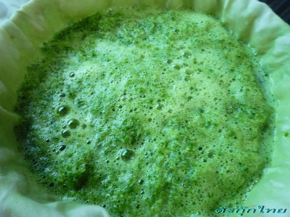 น้ำที่ปั่นเสร็จแล้ว ก็มากรองด้วยผ้าขาวบาง