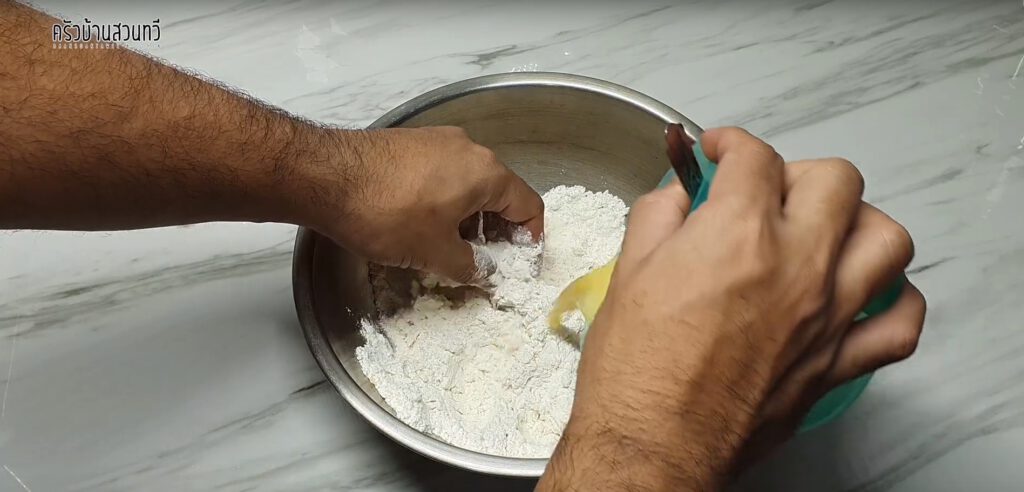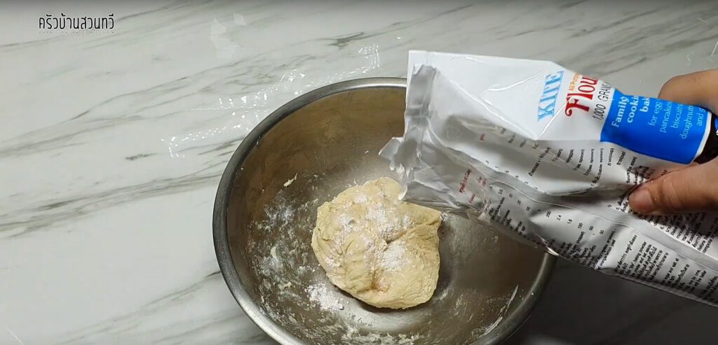เราสามารถเพิ่มแป้งลงไปได้ จนกว่าแป้งจะเข้ากันเป็นก้อนดี