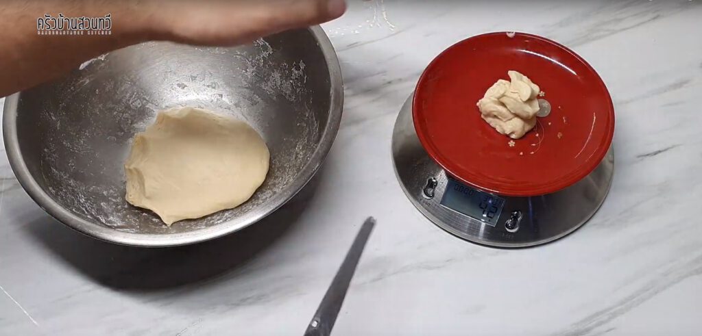 4. ตัดแบ่งแป้งออกเป็น 10 ก้อน (เพิ่มหรือลดได้ตามความชอบ)