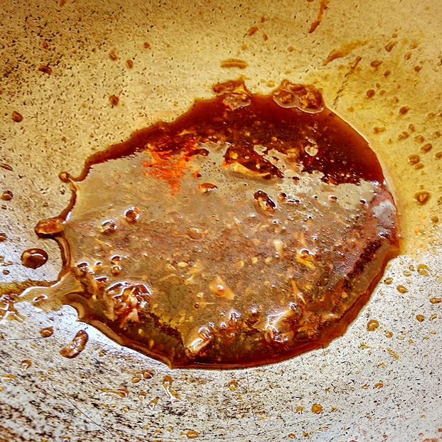 2.ตั้งกระทะเจียวกระเทียมให้หอมใส่ ซีอิ๊วขาว 4 ช้อนโต๊ะ น้ำตาล 2 ช้อนโต๊ะ น้ำผึ้ง 1 ช้อนโต๊ะ