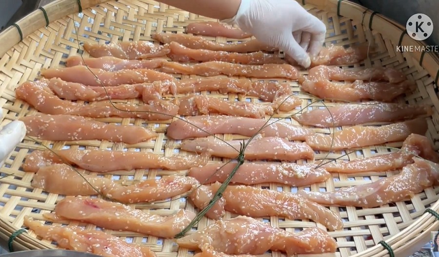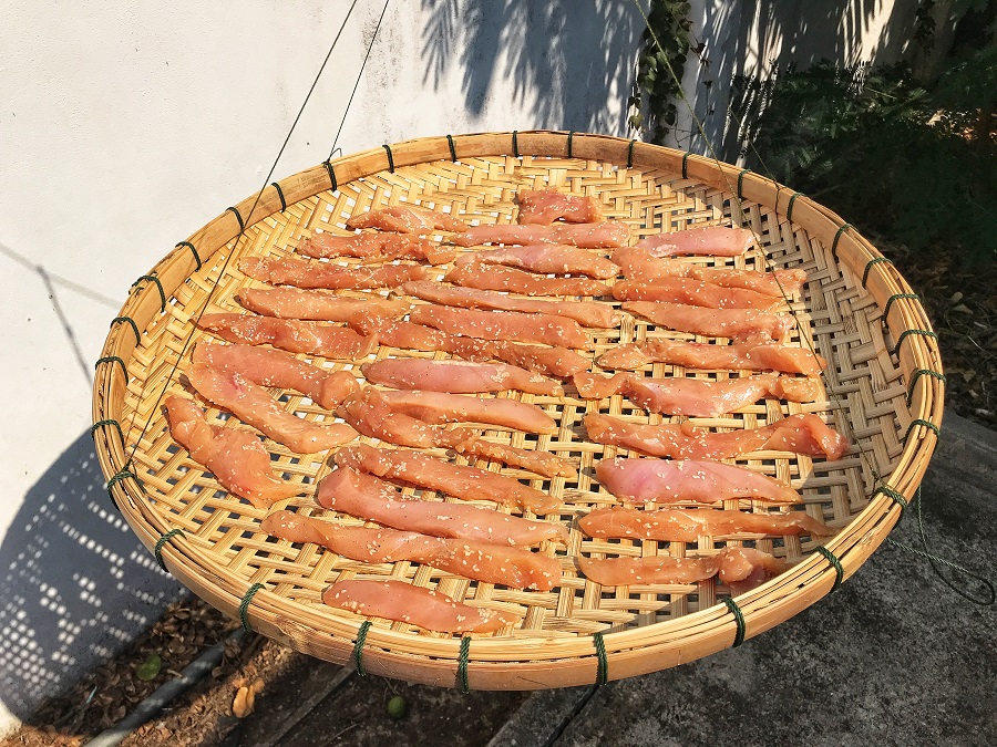 จะได้ไก่หมักน้ำป ล าแดดเดียว แห้งประมาณนี้นะคะ สูตรนี้เมื่อตากแดดแห้งแล้วจะได้ไก่หมักน้ำปล าแดดเดียว