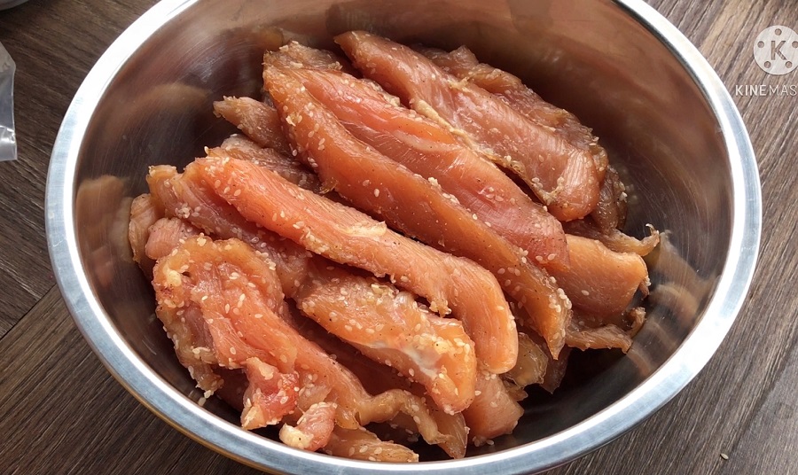 3. จากนั้นใส่ไก่ คนคลุกเคล้าให้เข้ากัน หมักทิ้งไว้ 1 ชั่วโมง