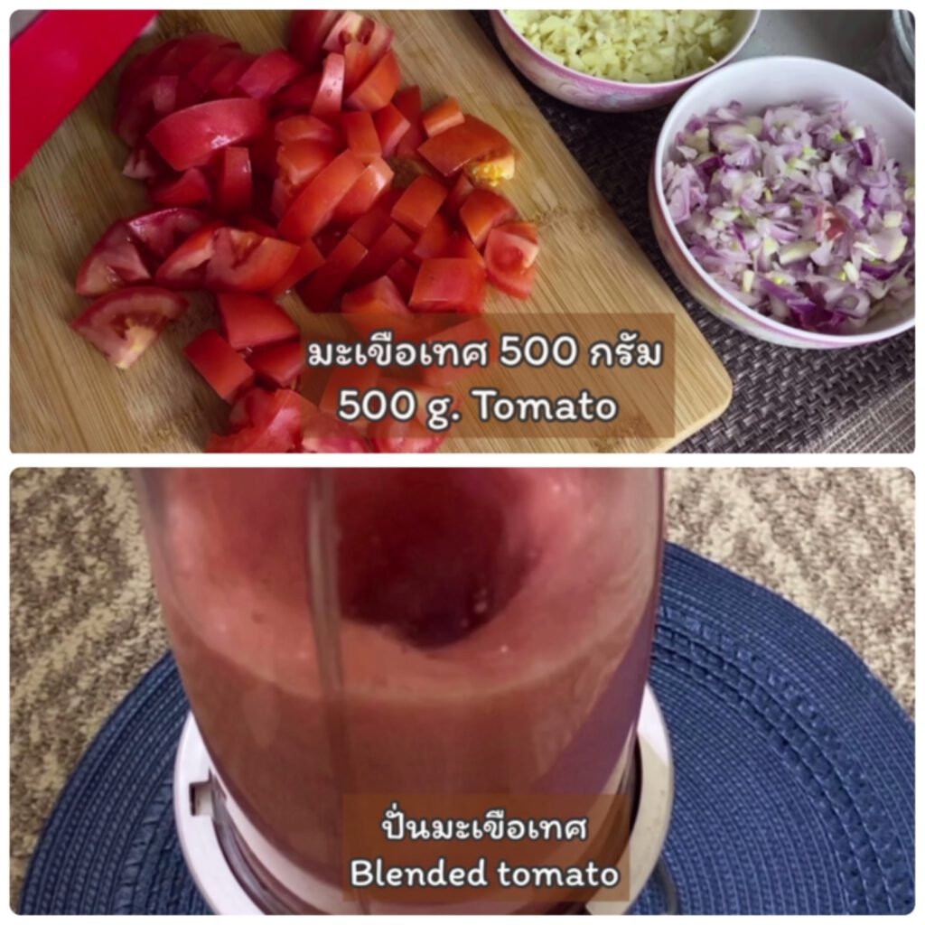 3. มะเขือเทศลูกใหญ่ หั่ นเป็นชิ้น นำไปปั่น