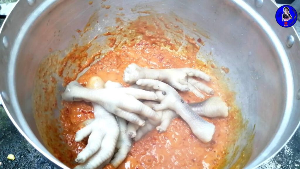1.นำตี นไก่มาตัดเล็บ ล้างน้ำทำความสะอาด และนำไปต้มให้เ ปื่ อย