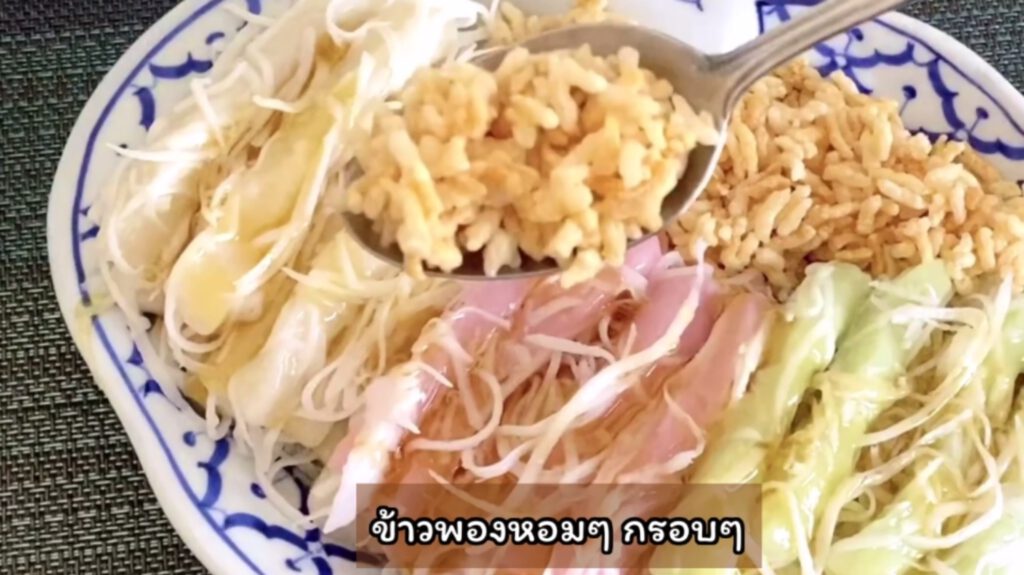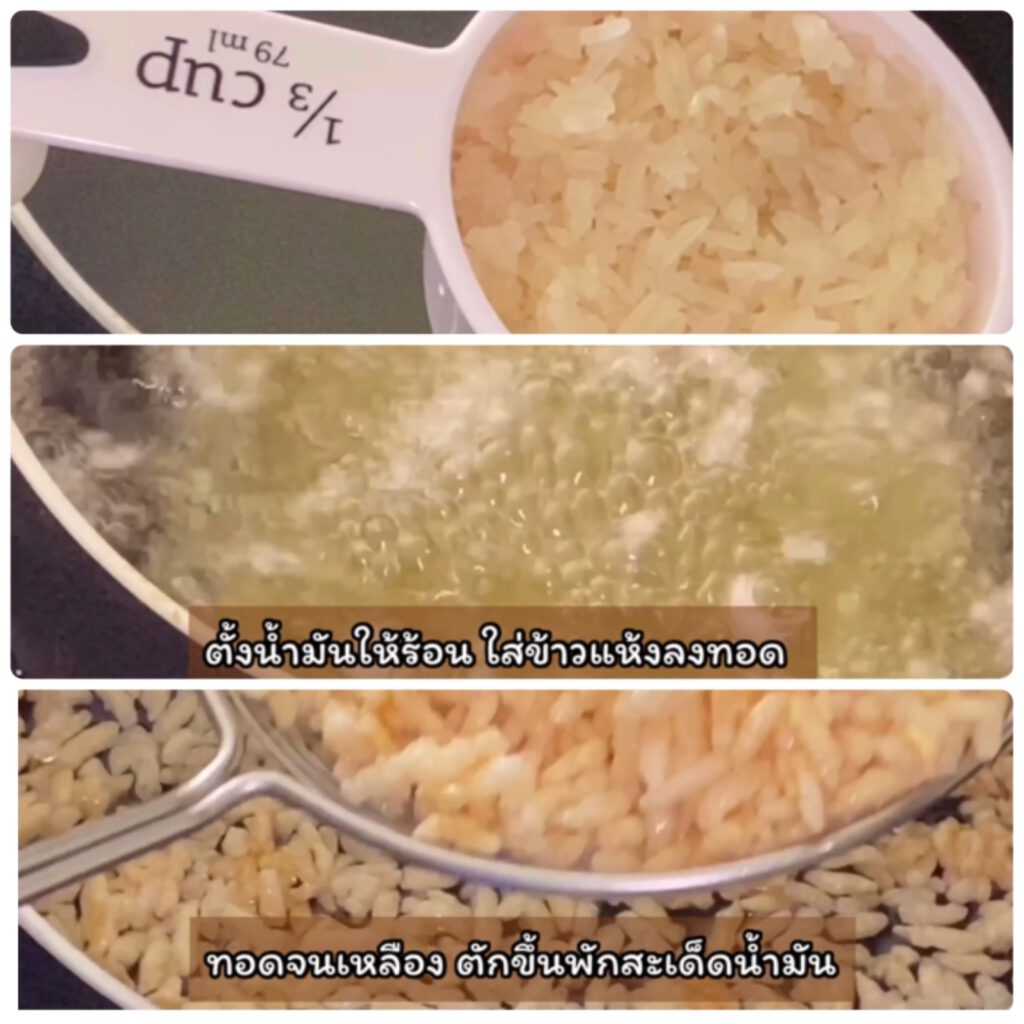 – ข้าวเหนียวนึ่ง ตากแดดจนแห้ง แล้วนำไปทอด