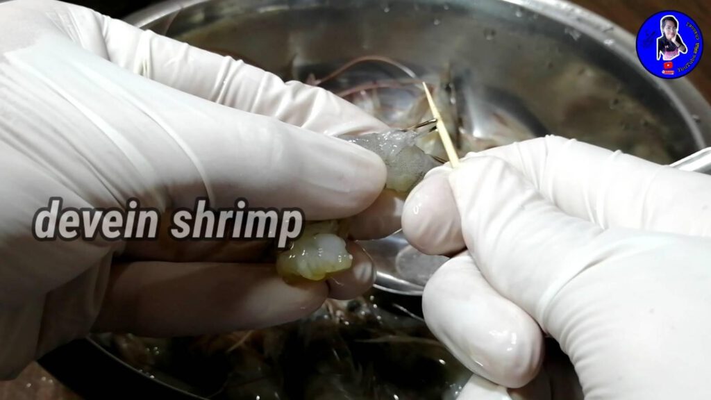 1.แกะเปลือกกุ้งออก ดึงเส้นดำที่หลังออกด้วยนะคะ