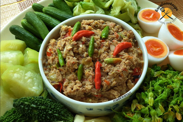 ปรุงรสด้วยน้ำปล า น้ำมะนาวตามที่ต้องการ จากนั้นก็ใส่ถ้วยที่เตรียมไว้ พร้อมหั่นไข่ต้มใส่จานเตรียมไว้เพื่อเป็นเครื่องเคียงสำหรับน้ำพริก