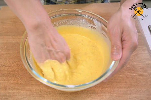4.พอนวดจนส่วนผสมเข้ากันได้ดี ค่อยๆทยอยใส่น้ำกะทิลงไป โดยแบ่งใส่สัก 3 รอบ สลับกับการนวดส่วนผสม